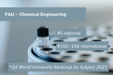 In the latest QS World University Rankings by Subject, Friedrich-Alexander-Universität Erlangen-Nürnberg (FAU) ranked in a total of 20 subjects. The subject area Chemical Engineering remains ranked number five in Germany. Internationally, Chemical Engineering secures top 200 ranking.